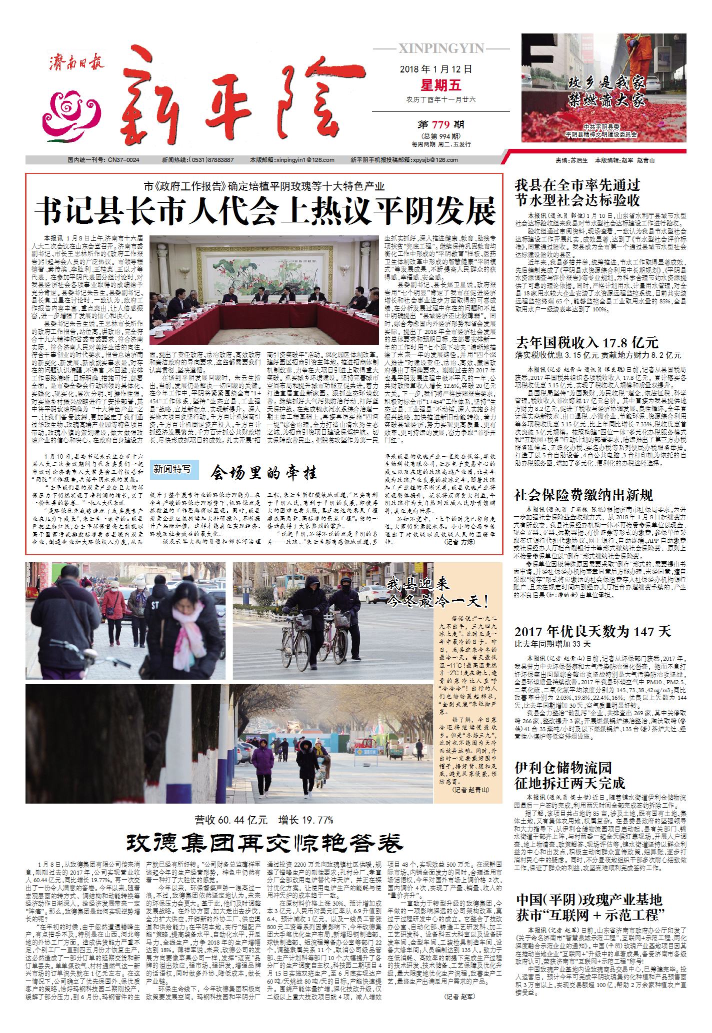 济南日报新平阴2018年1月12日一版