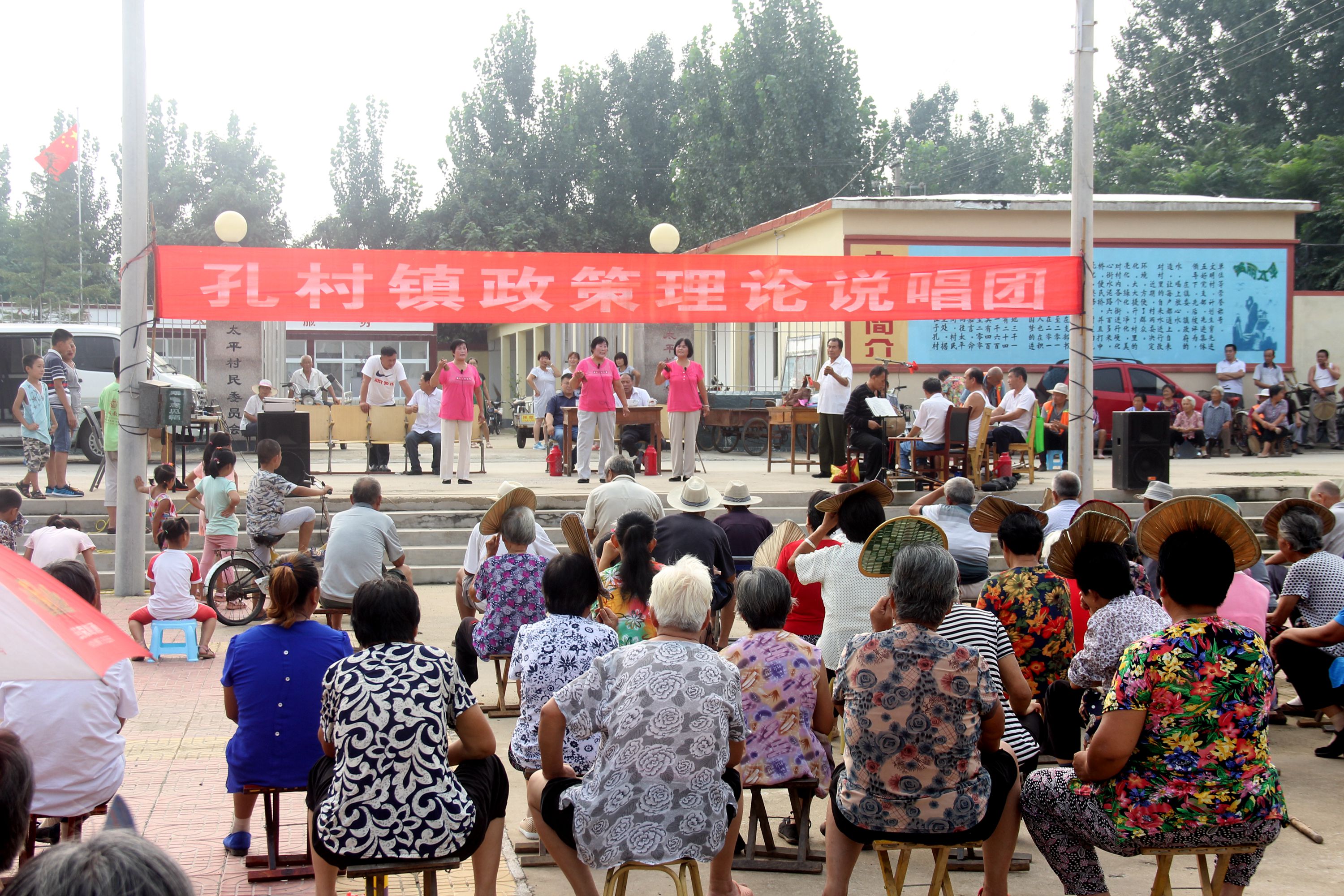 近日,孔村镇太平村的广场上异常热闹,许多村民都自带着马扎在这里等待观看表演。伴随着民乐演奏的响起,孔村镇政策理论说唱团巡演也宣告正式启动。据了解,此次巡演共有十场演出,每个办事处两场,且每场演出不少四个政策说唱类节目,预计九月底前结束。
