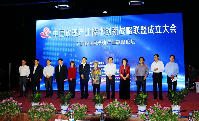 5月5日,由我县发起成立的“一带一路”中国玫瑰产业技术创新战略联盟(简称“一带一路”中国玫瑰产业联盟),在2016中国玫瑰产业高峰论坛、平阴玫瑰电商节启动仪式上正式宣告成立。这一打通玫瑰产业研发、加工、市场、服务等全产业链的产业联盟,将为我县乃至全国玫瑰产业创新发展带来更多契机。县几大班子领导参加了活动。 我国玫瑰产业领域第一个全国性行业组织——中国玫瑰产业联盟在我县成立 中国玫瑰产业联盟由我县发起,经中国产学研合作促进会批准成立,它以推动国内外玫瑰产业链上下游交流合作、搭建政企沟通桥梁、开展行业自律与维权、规范促进玫瑰企业发展为宗旨,整合行业资源,组织技术攻关,加快成果转化,提高中国玫瑰产品在国内外市场的竞争力和占有率。联盟成员单位,涵盖了玫瑰产业研发链、加工链、市场链和服务链(包括创意设计、机械设备、包装运输、认证检测等服务),搭建了一个产、学、研、金、介多位共赢的产业平台,创造低成本、便利化、全要素、开放式的玫瑰产业创新创业生态圈。 平阴县委书记毛华铭,中国工程院院士、中国中医药科学院常务副院长、中药资源中心主任黄璐琦等为联盟成立揭牌。 平阴县委副书记、县长朱云生致欢迎辞。 大会举行了联盟官网上线启动仪式,联盟代表宣读了《玫瑰联盟平阴宣言》。 中国工程院院士、中国中医科学院常务副院长黄璐琦,北京中医药大学基础医学院副院长贺娟,齐鲁工业大学食品科学与工程学院系副主任、平阴县挂职科技副县长张志国,分别做了玫瑰食品药品保健品的开发应用主题演讲。