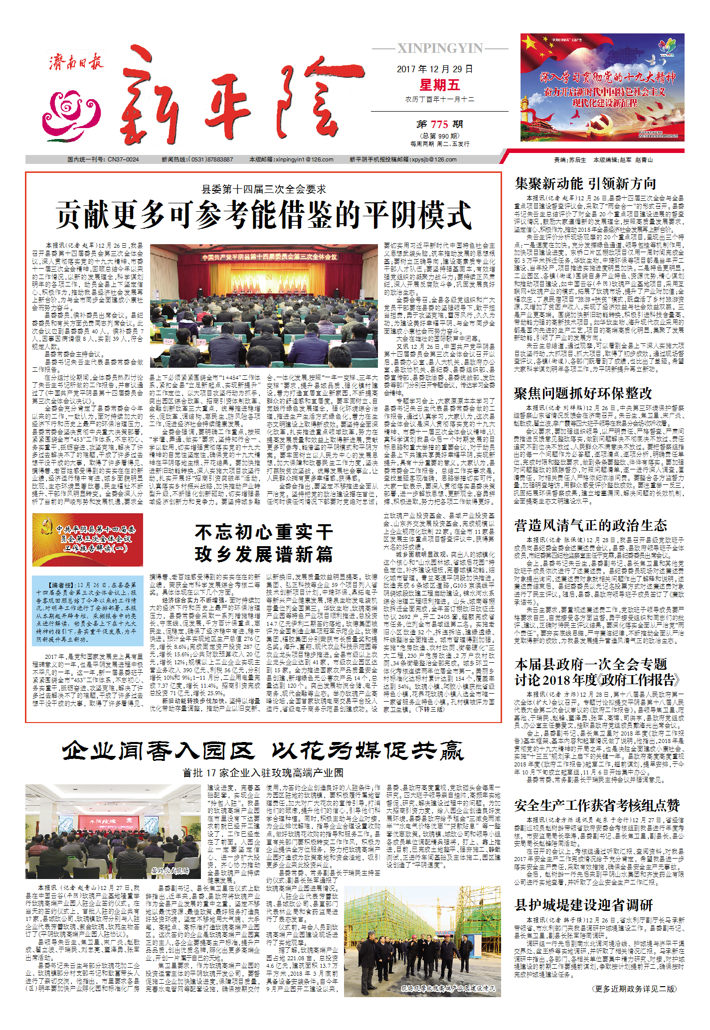 济南日报新平阴2017年12月29日一版