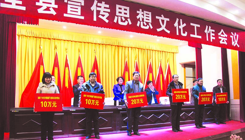 陈红在讲话中指出,2014年全县宣传思想文化战线以宣传贯彻党的十八届三中、四中全会精神和习近平总书记系列重要讲话精神为主线,坚持围绕中心,服务大局,坚持团结稳定鼓劲,正面宣传为主,坚持“三贴近”,弘扬主旋律,传播正能量。一年来,扎实开展党的群众路线教育实践活动,推动了作风大转变;强化思想引领,深入推进了理论大众化普及化;做大做强正面宣传,巩固发展了主流思想舆论;培育和践行社会主义核心价值观,提升了城乡文明水平;坚持文化为民惠民,推进了文化大发展大繁荣。全县宣传思想文化工作主题鲜明,亮点突出,推进有力,成效显著,多项工作名列全市第一,政策理论说唱团、基层宣传员、“乡村文明行动”等一系列特色亮点工作,在省市、全国创出了品牌,为推进项目建设攻坚、园区建设突破、城乡品质提升、干部作风转变,提供了强大的思想保证、精神动力、舆论支持和文化条件。
